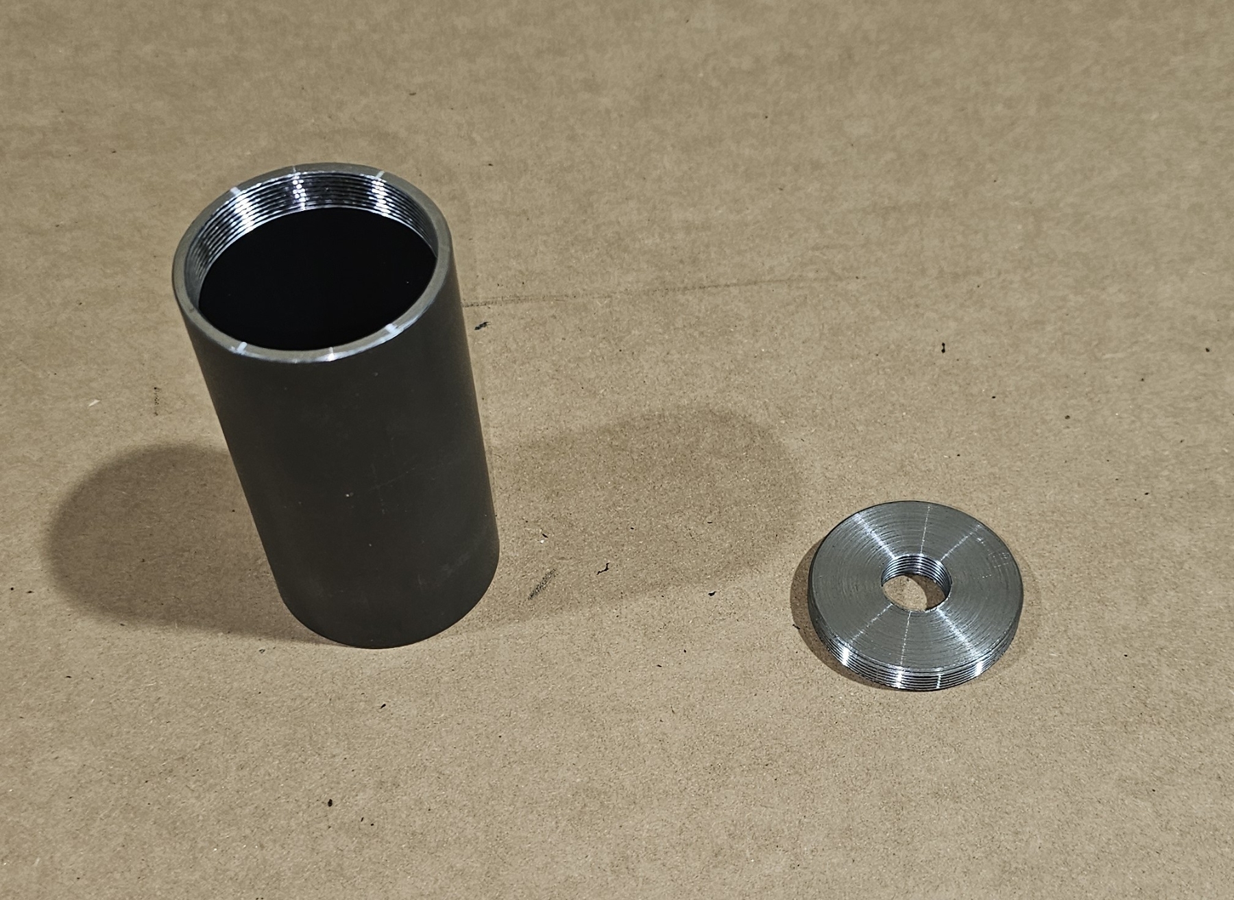 Threads behind the muzzle brake. Overall length is about 3''. ID is 1-3/8''. Sticky threads between the shroud and the adapter.
